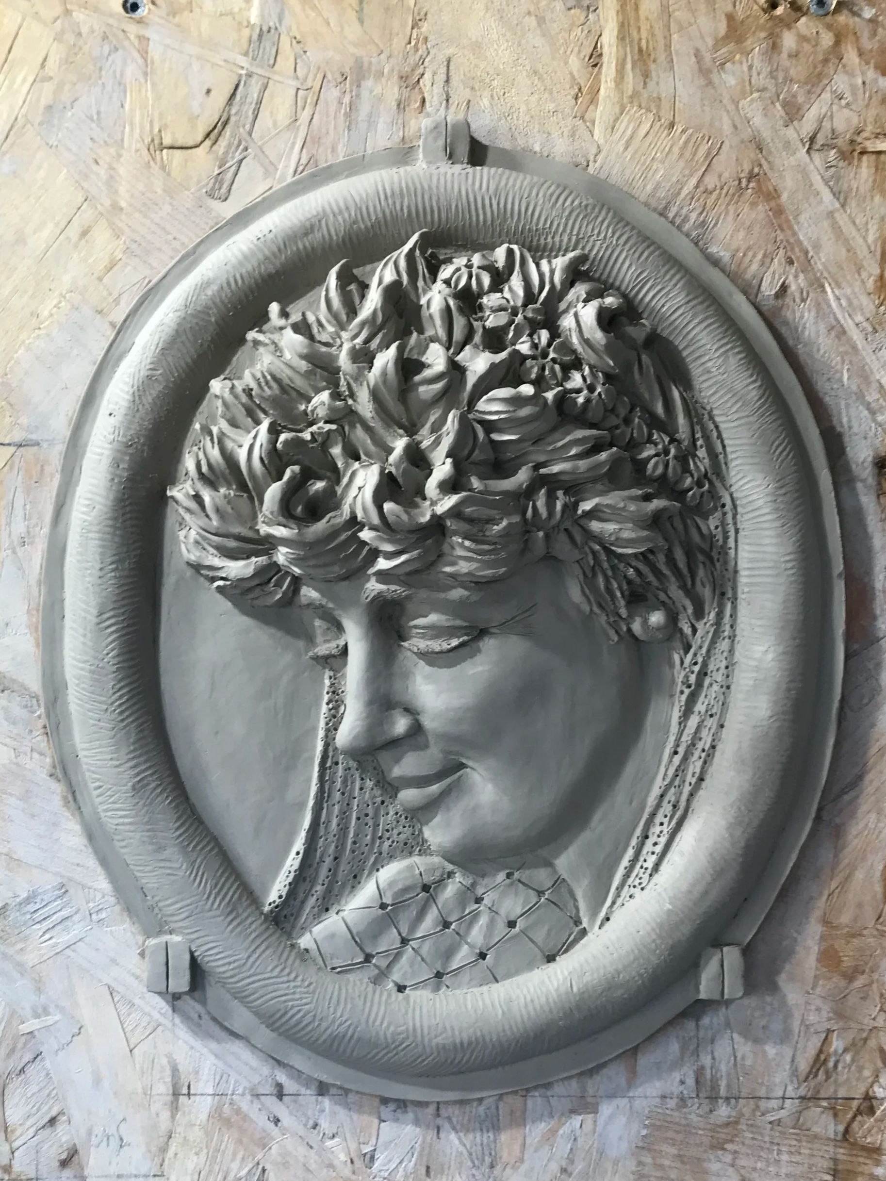 réalisation d’un bas-relief en marbre de 204 par 105 cm pour un monument funéraire.
